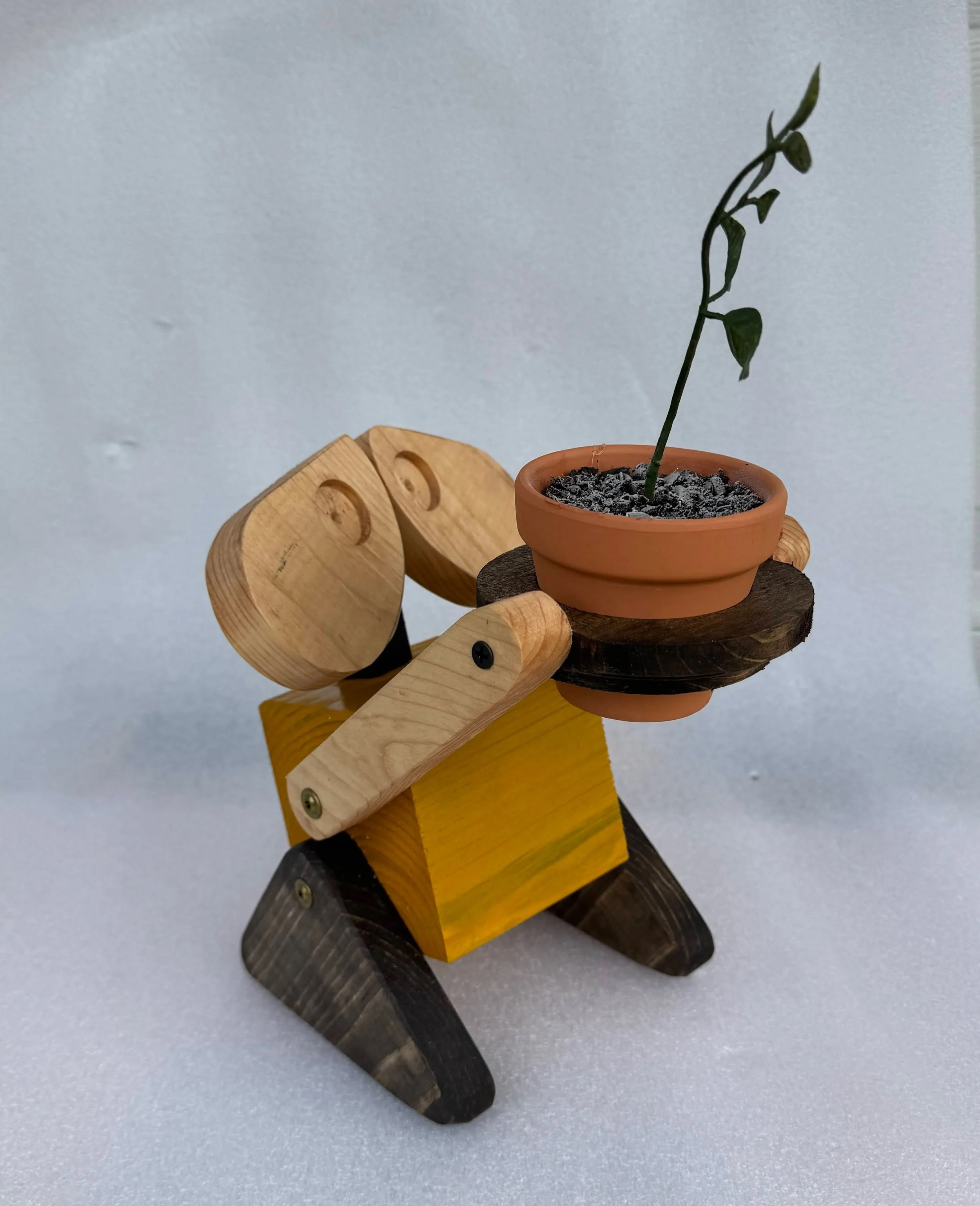 Meet your desk sidekick: a handmade robot plant holder with playful wooden tones, natural variances, and a holder for succulents, air plants, or small herbs. Durable, slightly vintage, and full of character, it brightens shelves, windowsills, or workspaces—perfect for plant lovers, tech fans, or anyone who loves quirky décor.